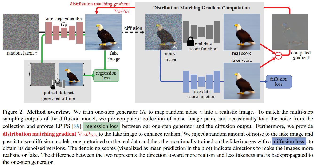 出典:One-step Diffusion with Distribution Matching Distillation Tianwei Yin et al. Figure. 2 https://arxiv.org/abs/2311.18828