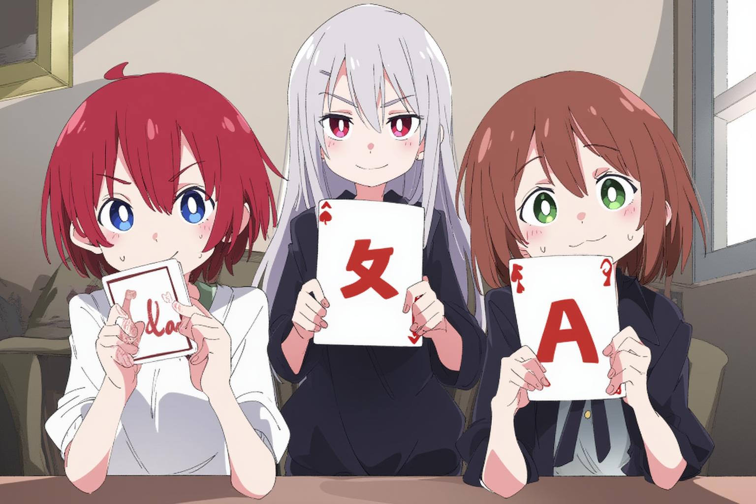 You are an assistant designed to generate high-quality images with the highest degree of image-text alignment based on textual prompts. <Prompt Start> アーティストタグ, vibrant colors, english text, front-facing, full body, soft lighting, humorous mood, masterpiece, best quality, amazing quality, indoors. 3人の女の子がいます。 左の女の子は赤いショートヘアー、青い目で、"左"と描かれたカードを持って座っています。 真ん中の女の子は銀のロングヘアー、赤い目で、"中"と描かれたカードを持って立っています。 右の女の子は茶色のミドルヘアー、緑の目で、"右"と描かれたカードを持って座っています。