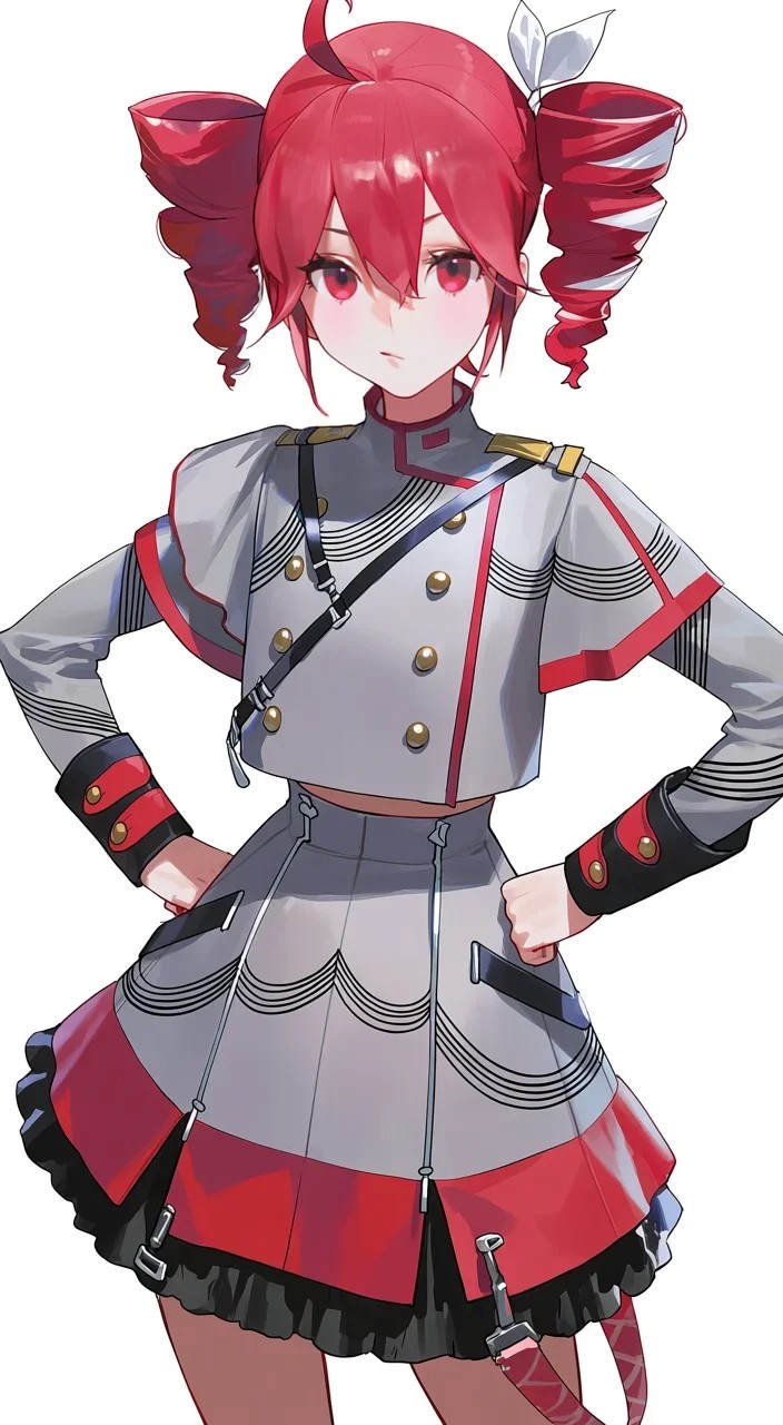 @アーティストタグ, masterpiece, best quality, kasane teto (sv), red drill hair, grey jacket, layered skirt ネガティブプロンプト worst quality, low quality, score_1, score_2, score_3, blurry, jpeg artifacts, sepia