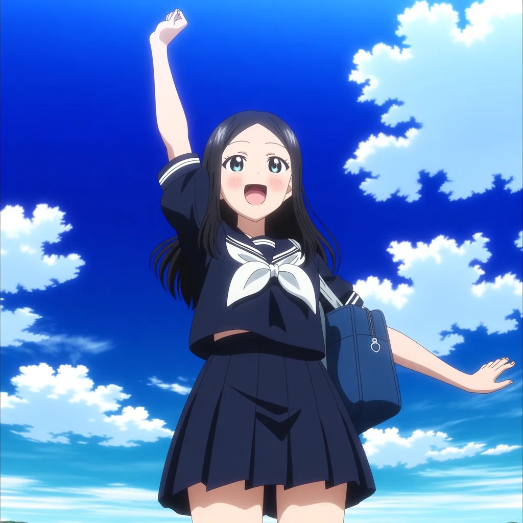 sensitive, newest, year 2025, anime screenshot, 1girl, outdoors, school uniform, from below ネガティブプロンプト @厚塗り系アーティスト, worst quality, low quality, score_1, score_2, score_3, score_4, blurry, jpeg artifacts, sepia, sketch, english text, engrish text, chinese text, korean text