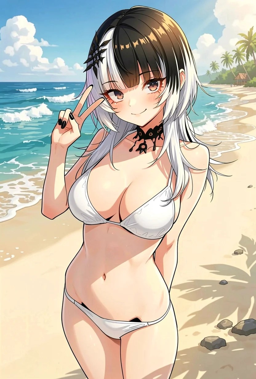 Her *hair color* is black and white.