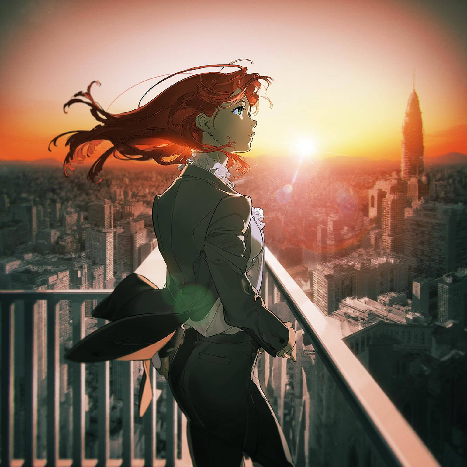 You are an assistant designed to generate anime high-quality images with the highest degree of image-text alignment based on textual prompts. <Prompt Start> 1girl, lineart, greyscale, yoneyama mai, solo, long red hair, green eyes, business casual, blazer, blouse, contemplative expression, leaning on railing, wind blown hair, back view, dramatic sunset, golden hour lighting, lens flare, urban rooftop, city panorama, best quality, 黄金比を用いて人物を広大な都市の夕焼けに配置し、野心と内省を象徴する力強いシルエットを形作っている。 ゴールデンアワーのドラマチックな逆光が、流れるような赤褐色の髪を捉え、映画的なレンズフレアと共に屋根の上に長い影を落とす。 シルクブラウスに羽織ったチャコールグレーのテーラードブレザーは、風を受けて自然に波打つ。布地の風による動きが細部まで表現されている。 ガラス張りの高層ビルと歴史的建造物が広がるスカイラインは、都市の発展を物語っている。 このスタイルは、建築写真の手法と人物中心の物語性のあるイラストレーションを融合させている。