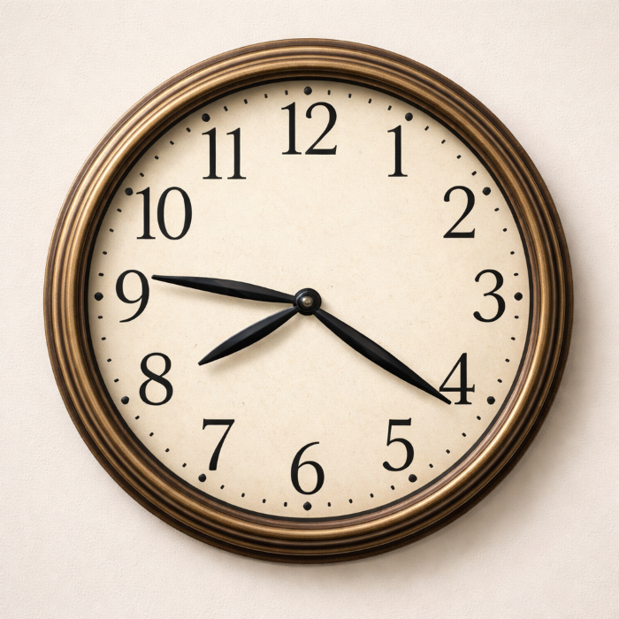 上の画像を FLUX.1 Kontext [dev] に入力し「Change the clock hands to 8:20.」としても画像を修正できない。